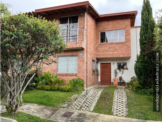 Casa en urbanización, con portería 24/7, de 2 niveles, con habitación y baño del servicio, patio con jardín, sala con chimenea, habitación principal con baño y vestier, habitación auxiliar con closet y baño en pasillo, a 1 km del parque principal de El Retiro, casa en muy buen estado con posibilidad de ampliación.